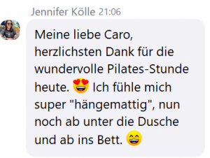 Heute ist Pilates mein Anker. Mein Ausgleich. Mein Energie-Booster. Ich fühle mich danach jedes Mal wie ein neuer Mensch. :)